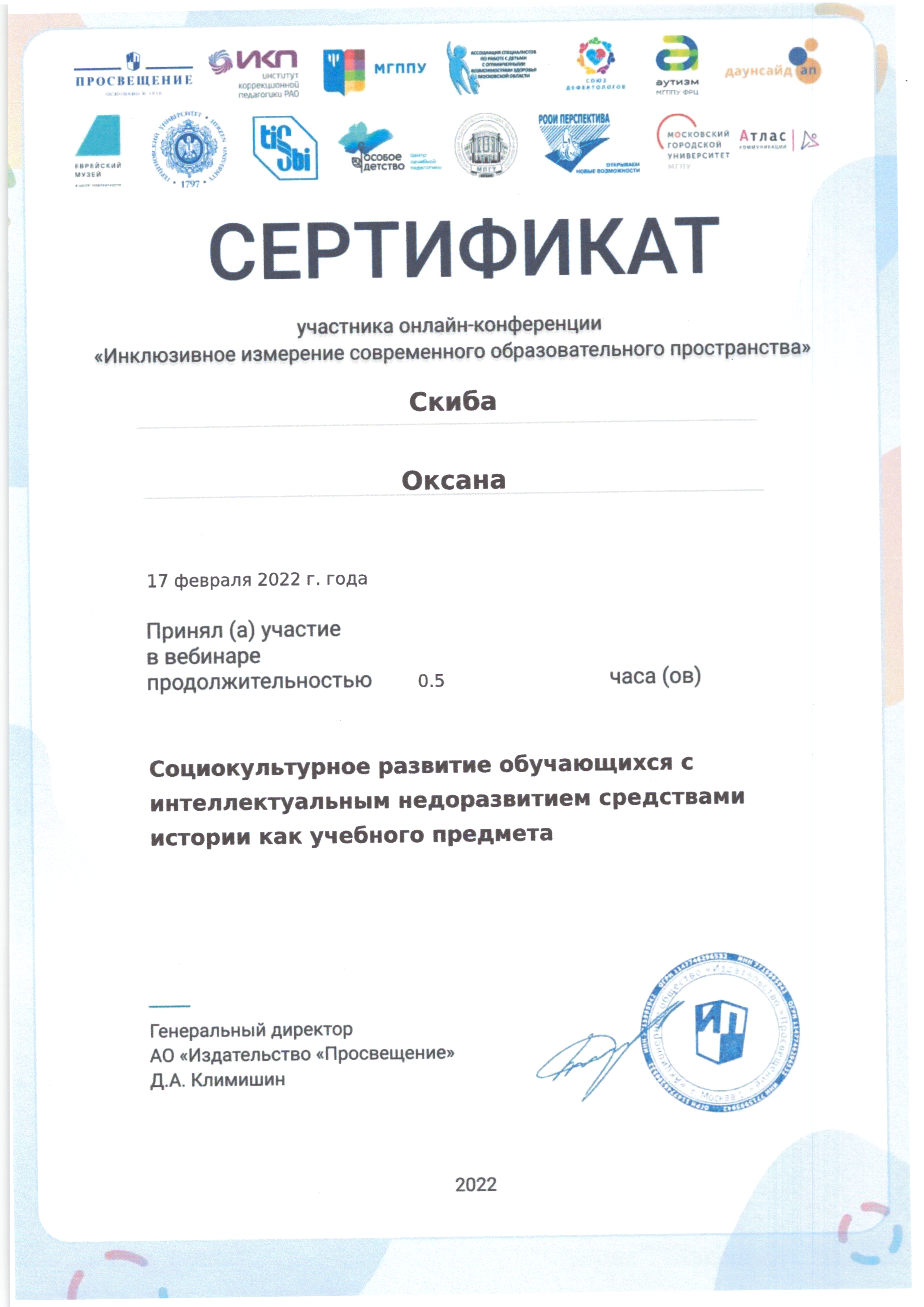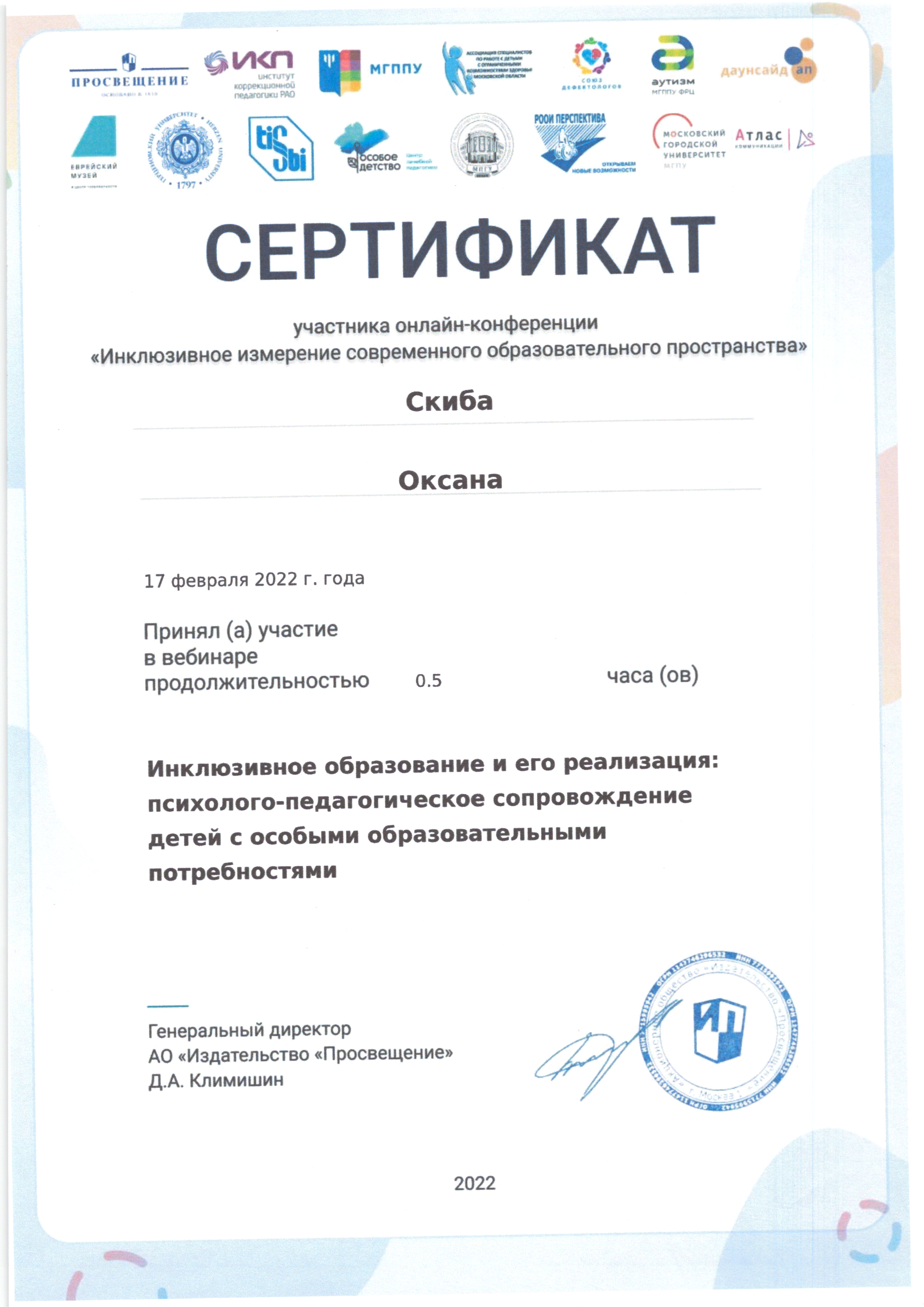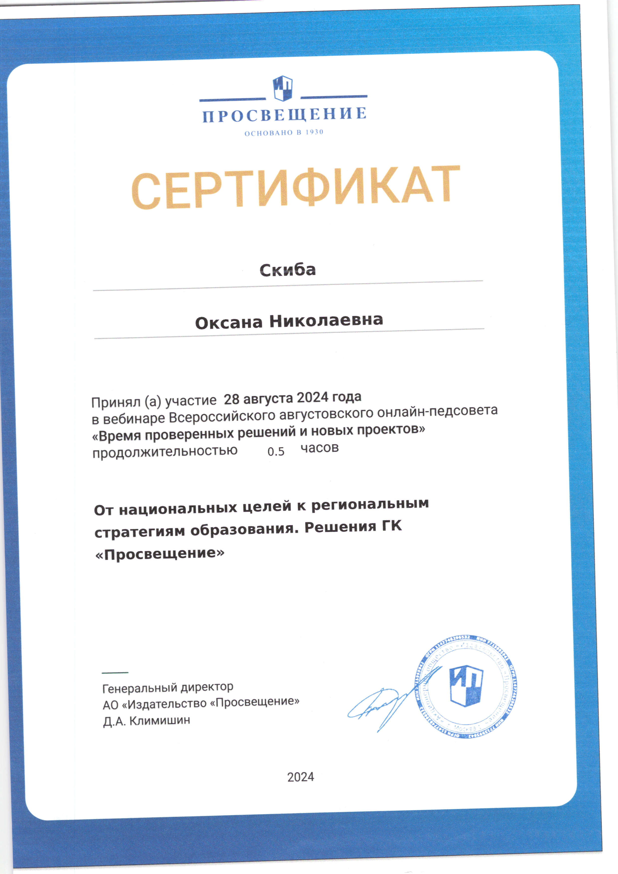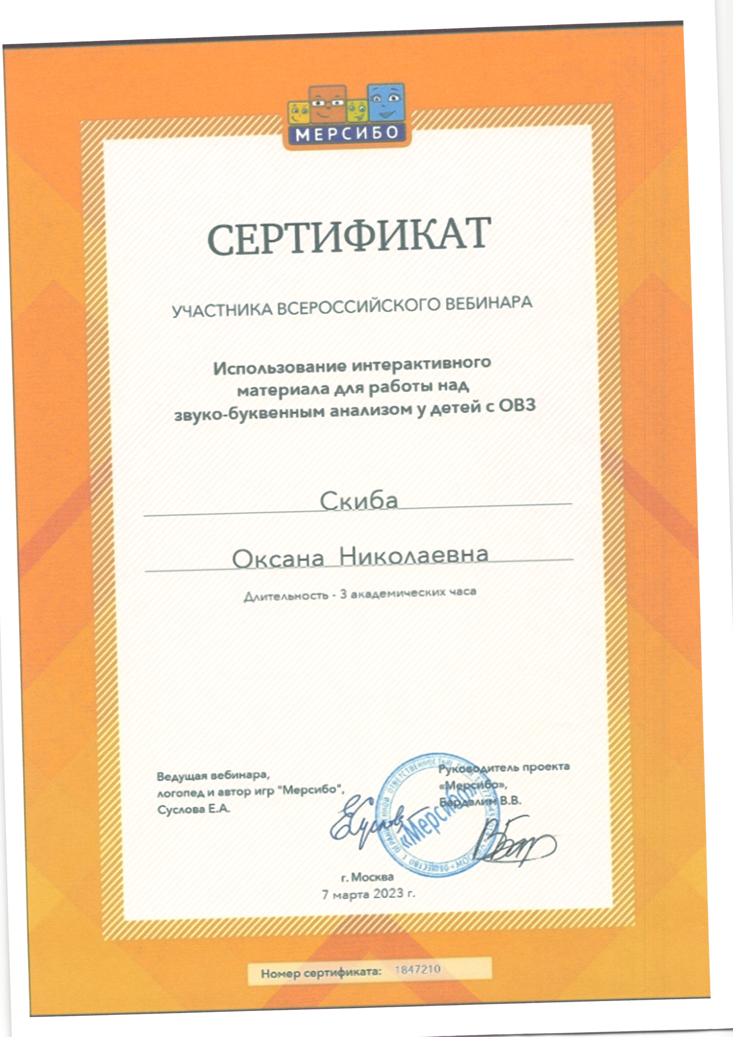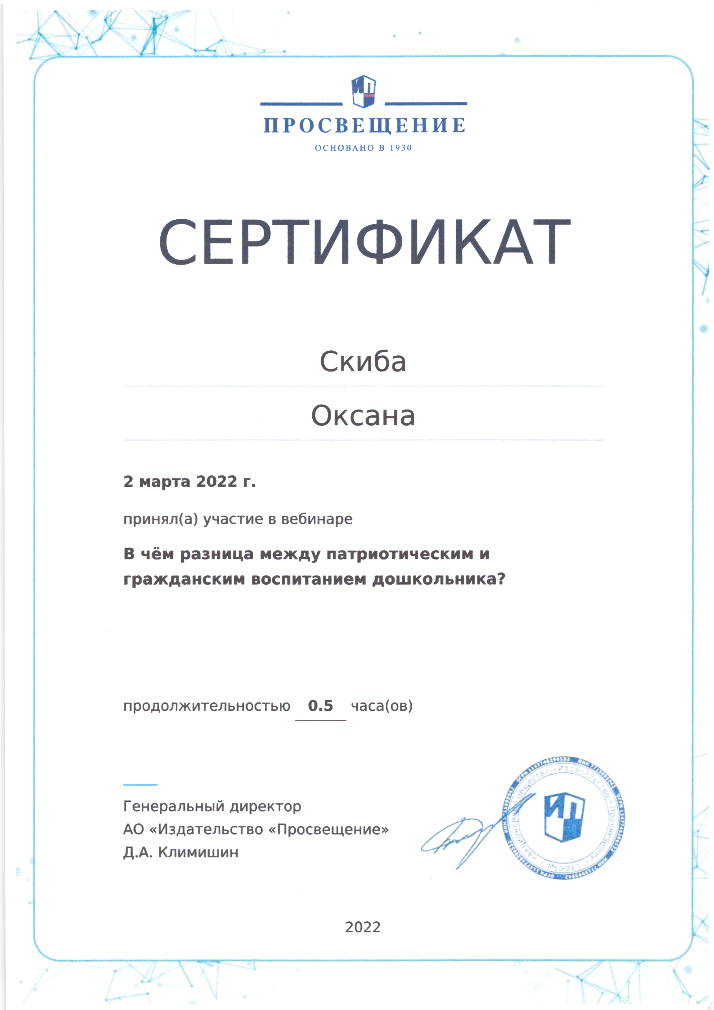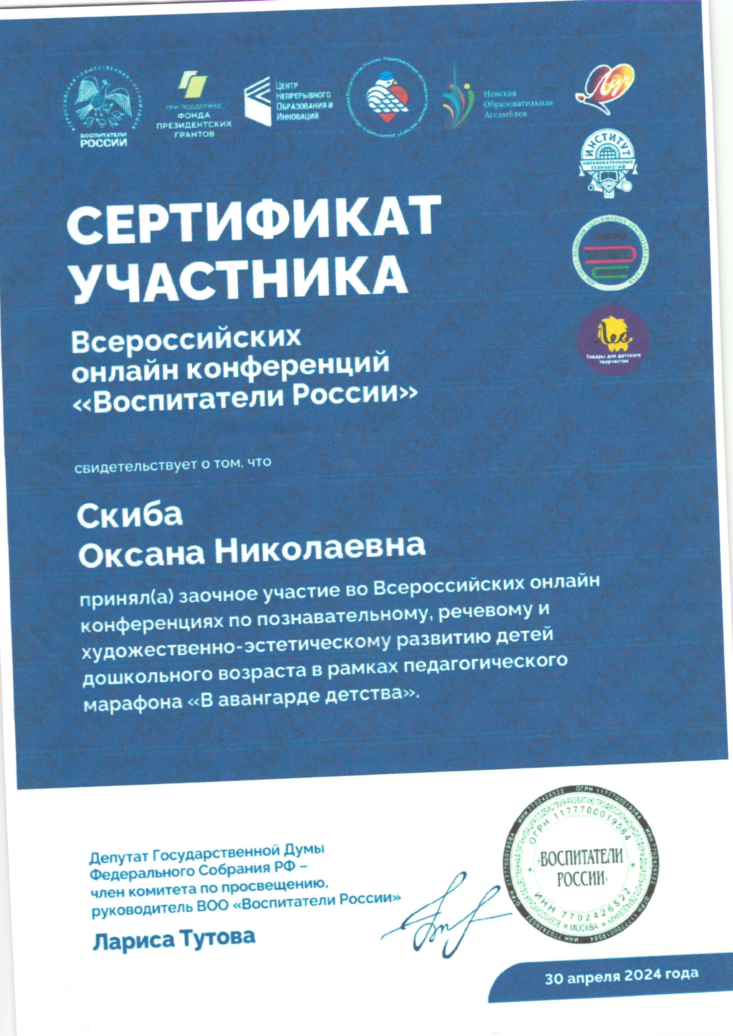 | Фамилия, имя, отчество | Скиба Оксана Николаевна |
