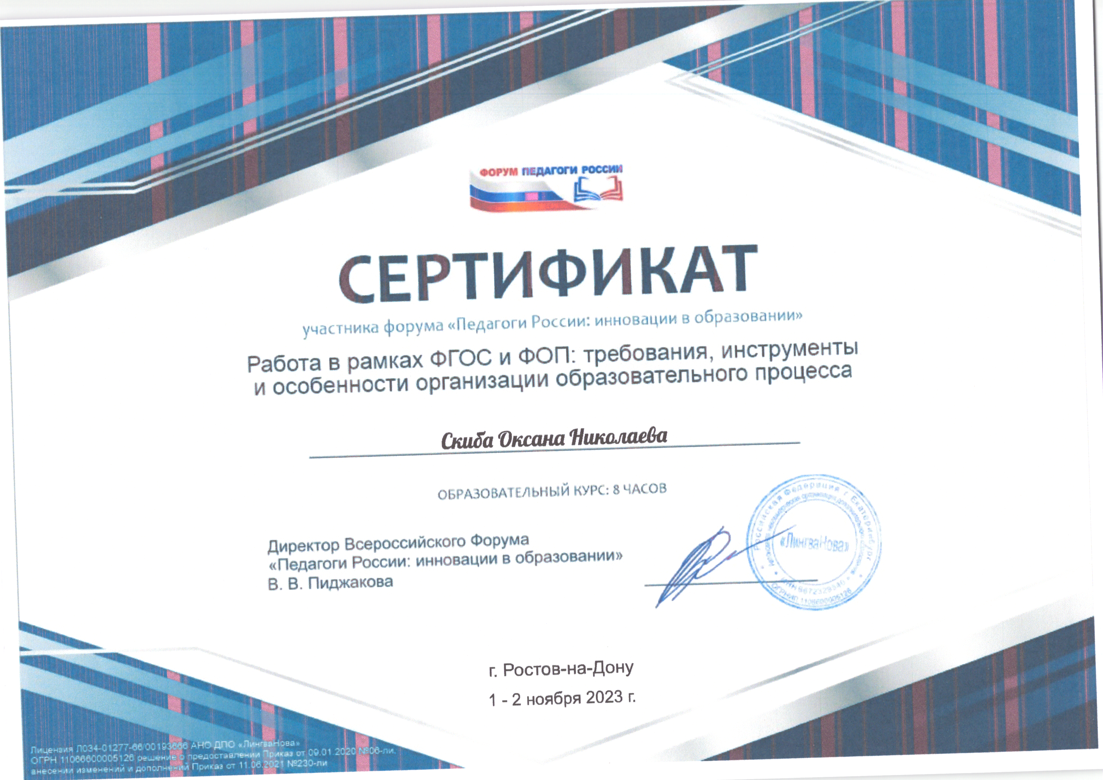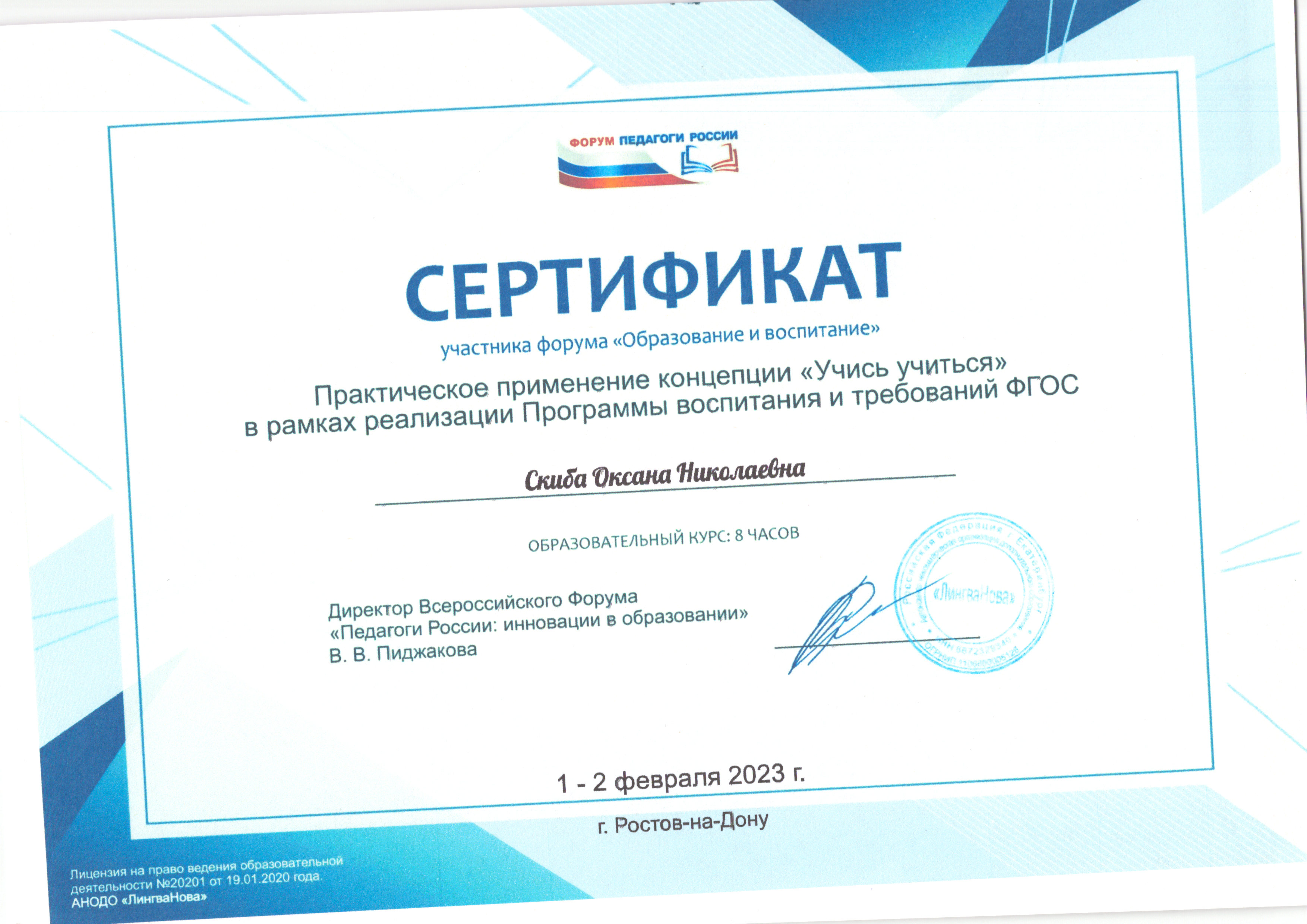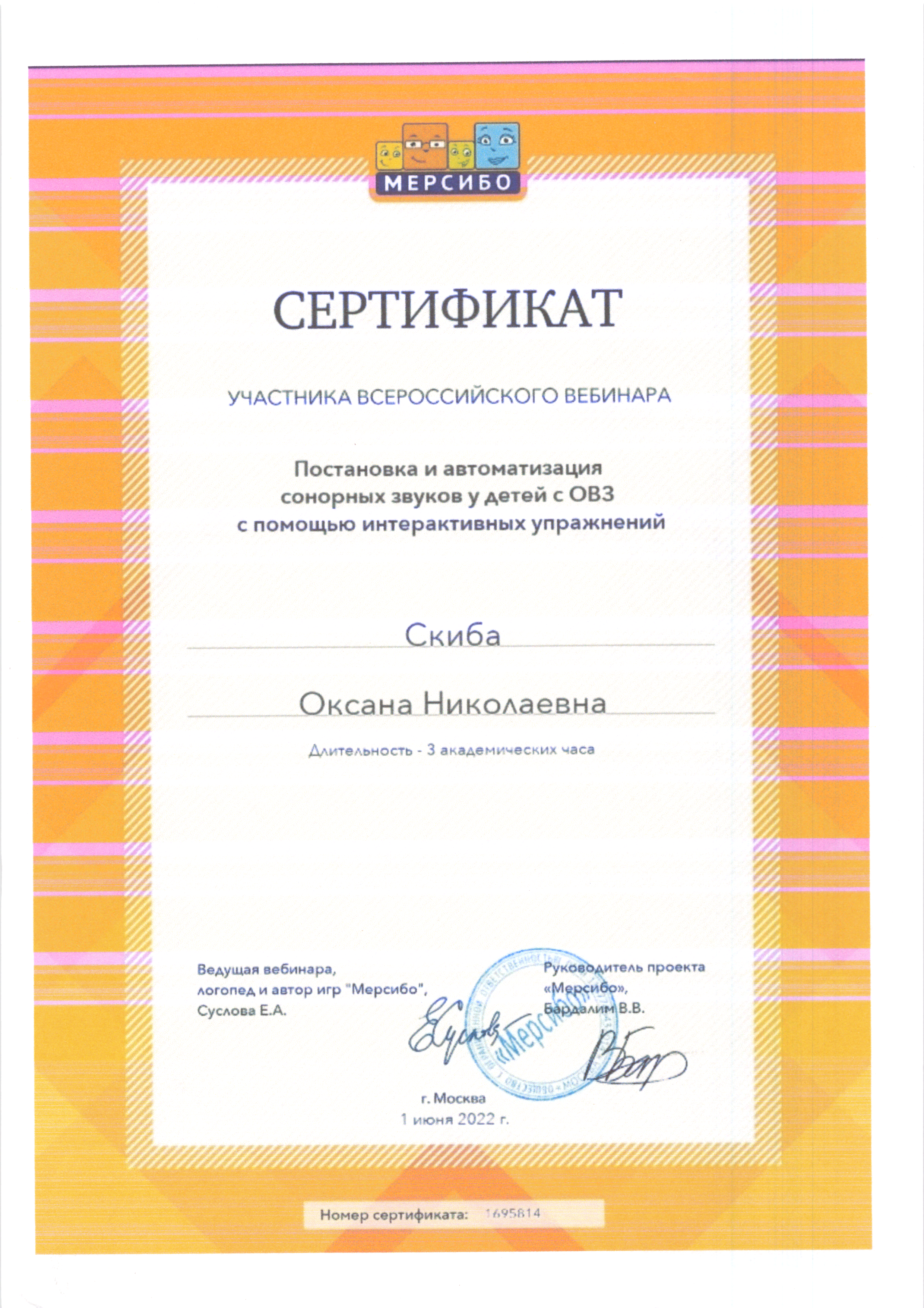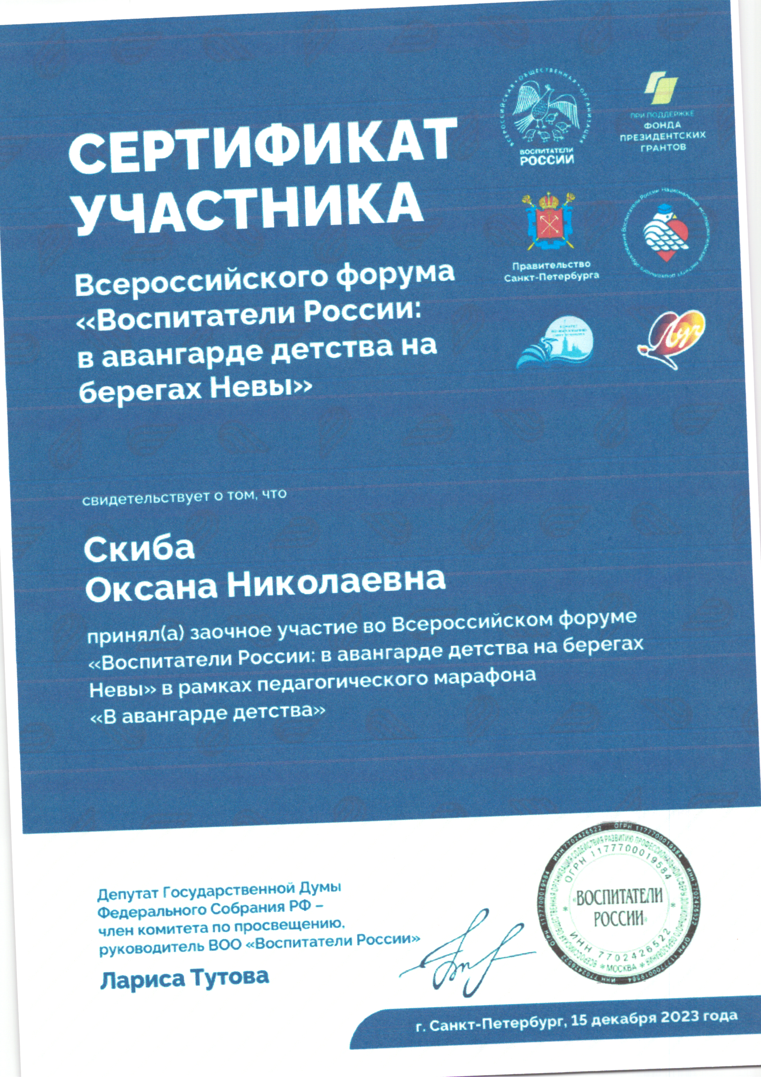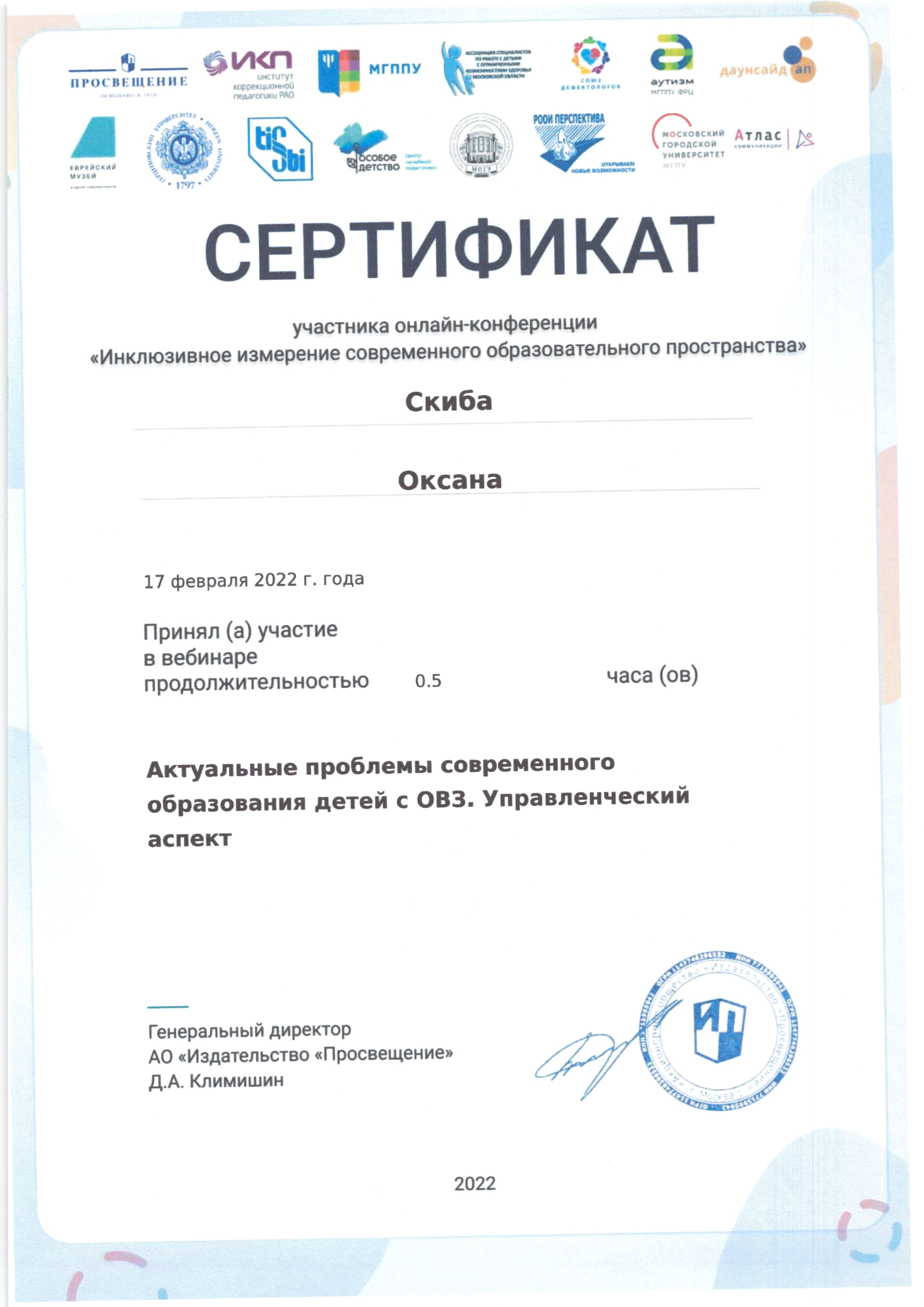 | Фамилия, имя, отчество | Скиба Оксана Николаевна |