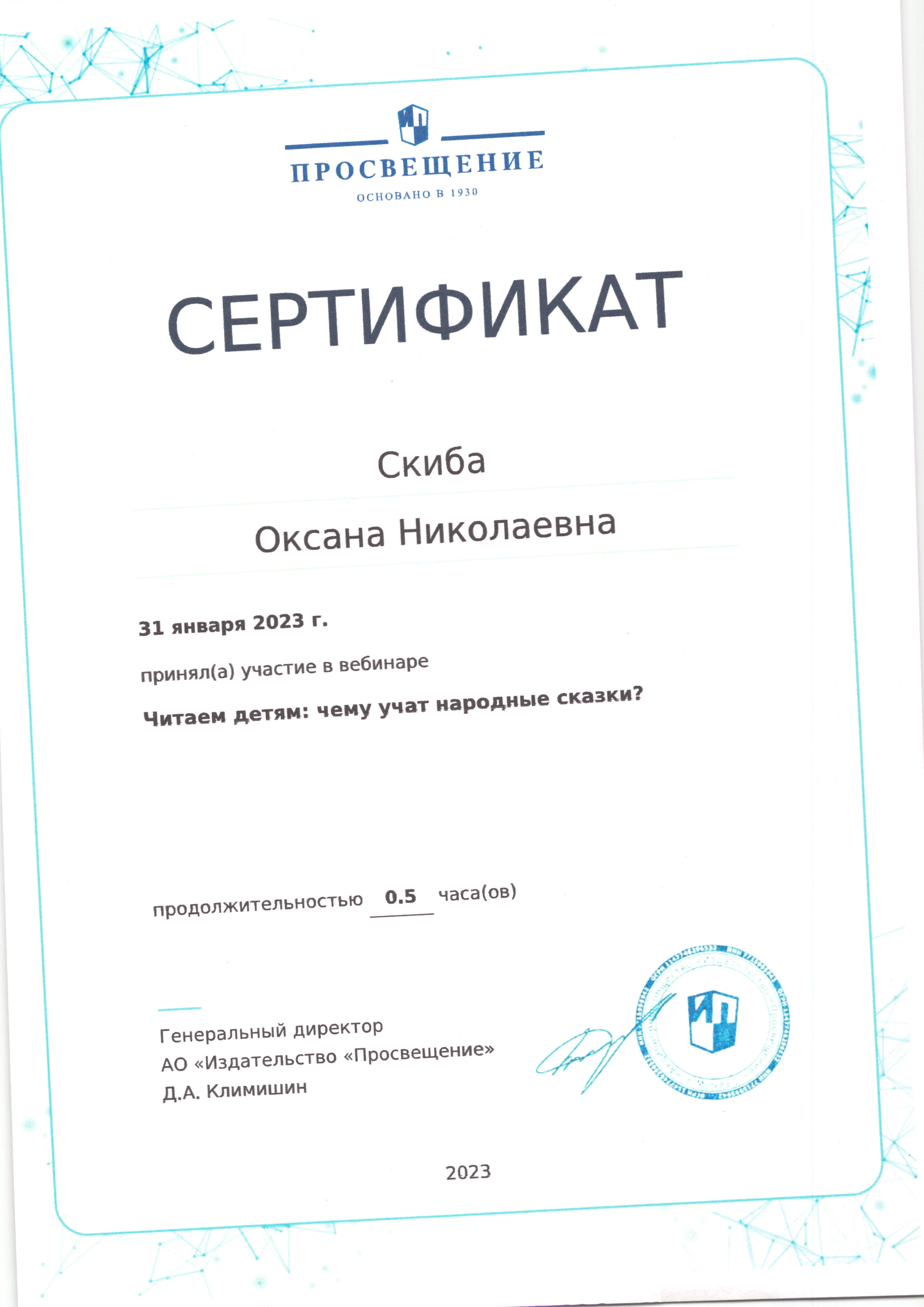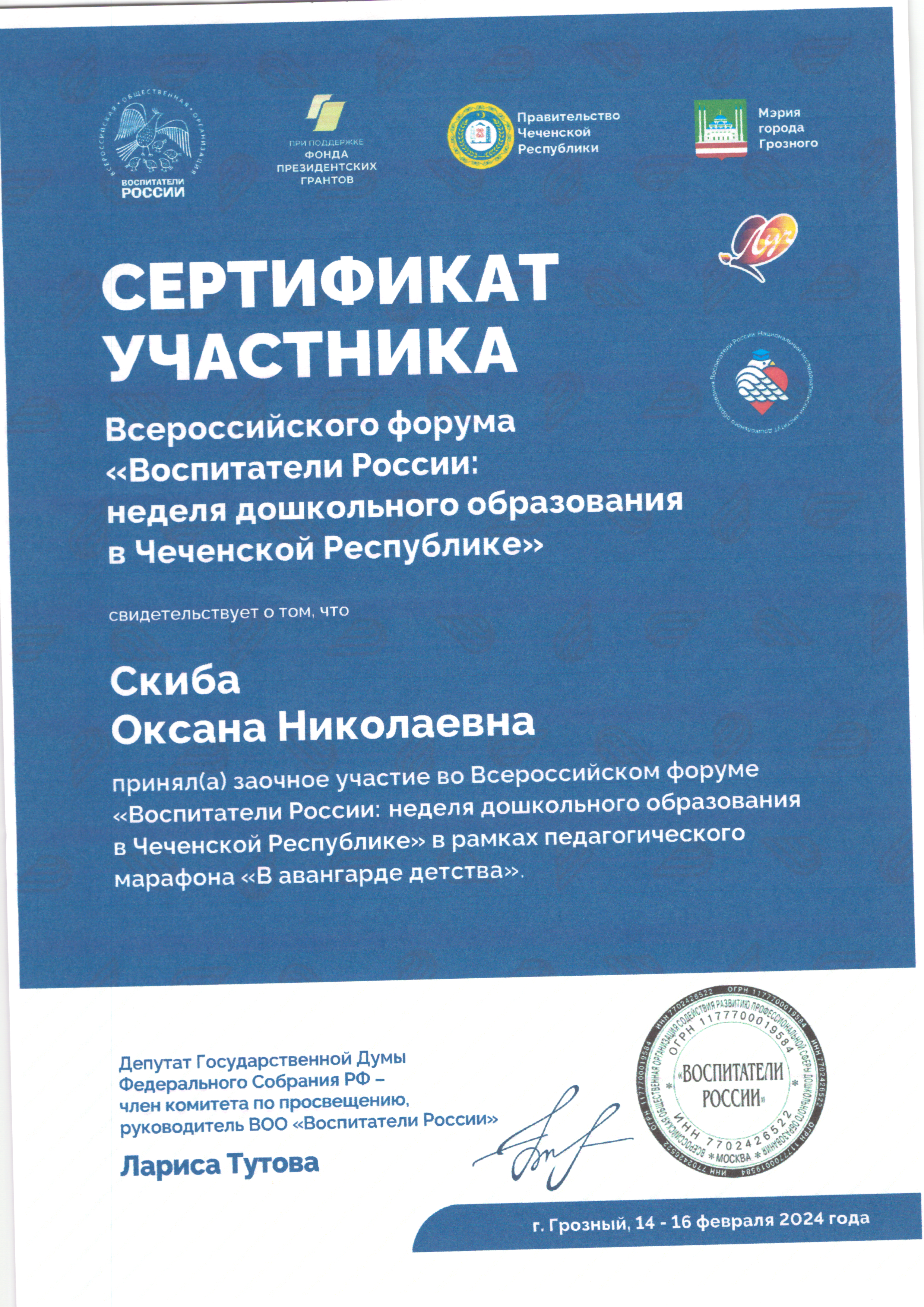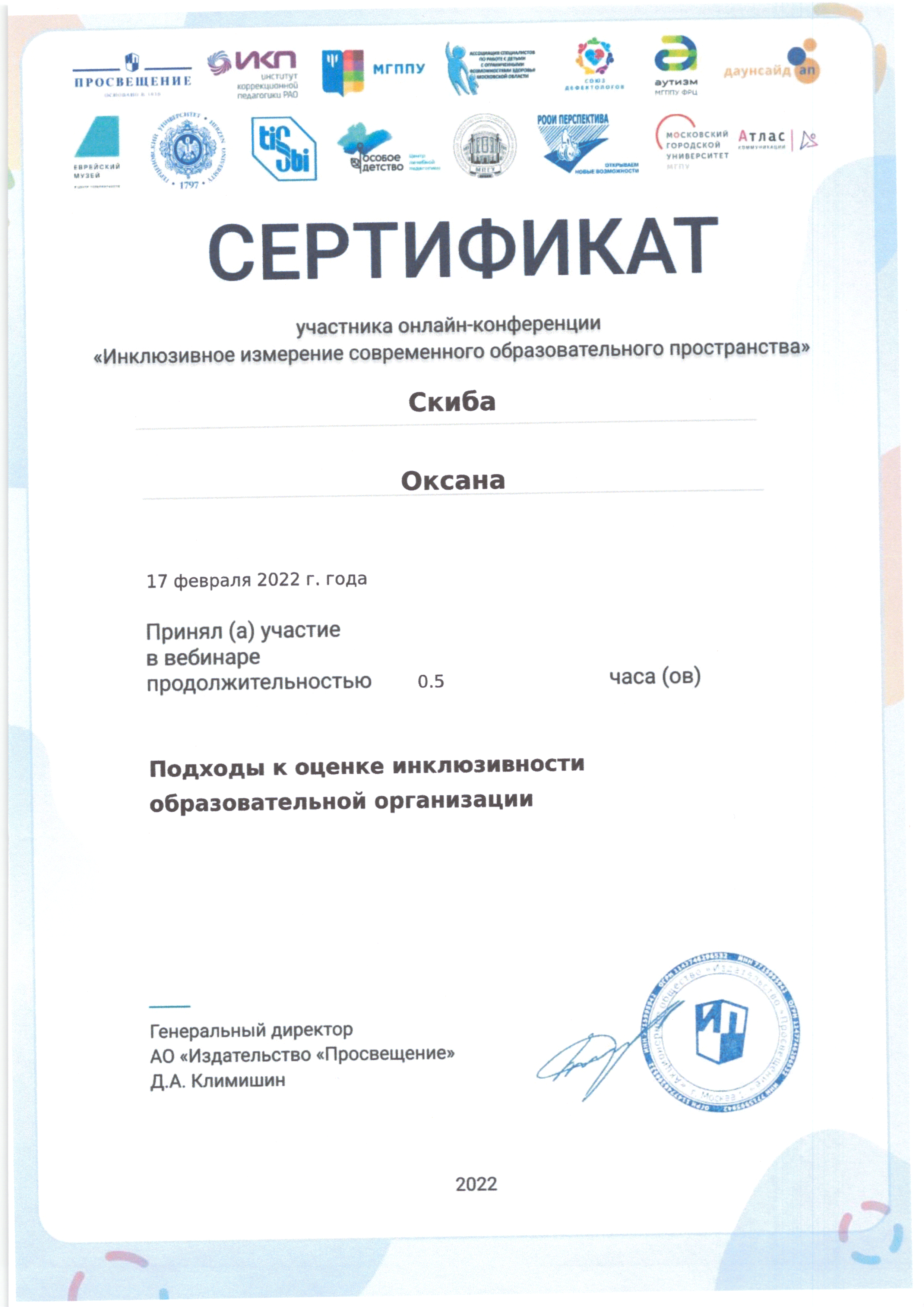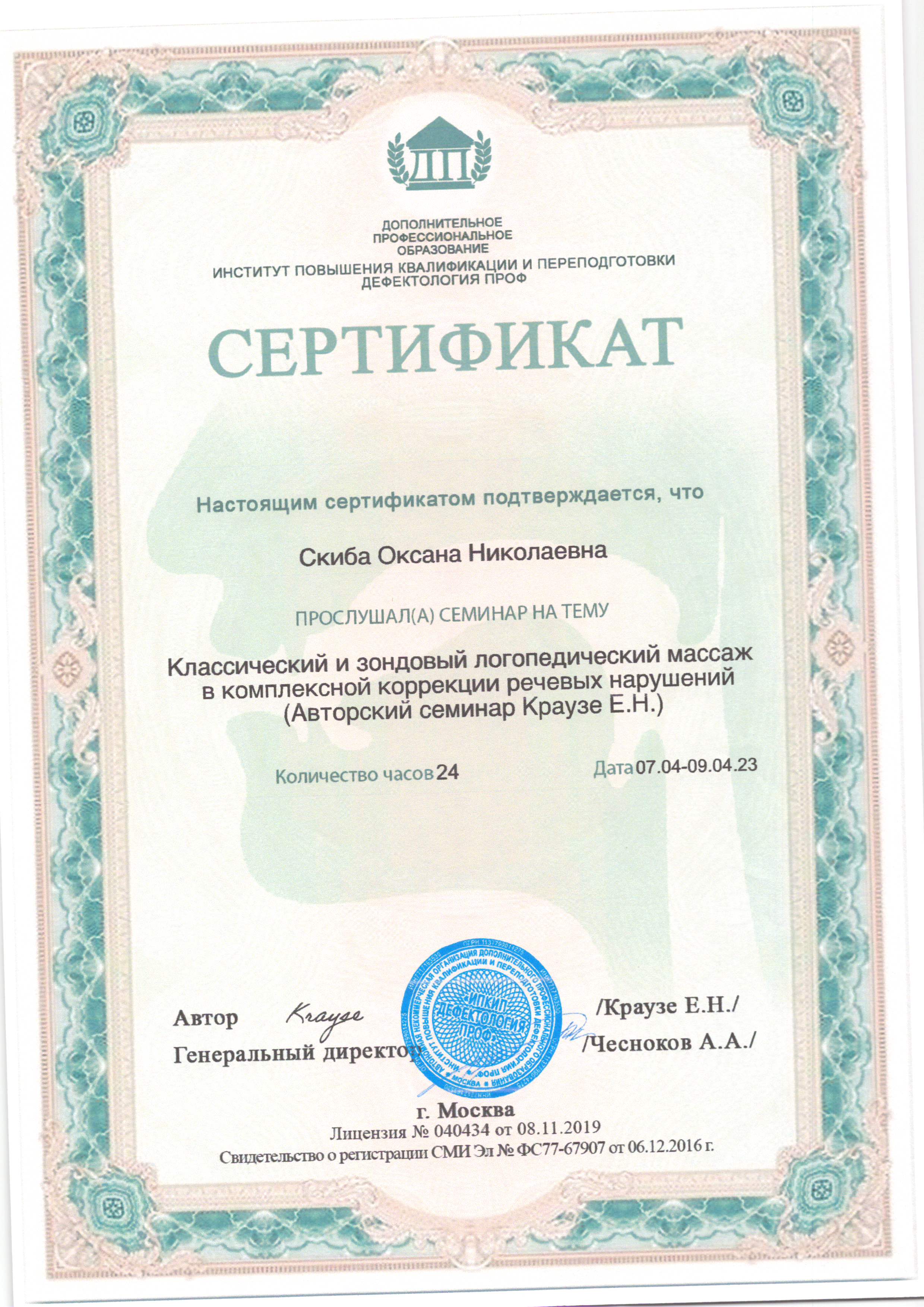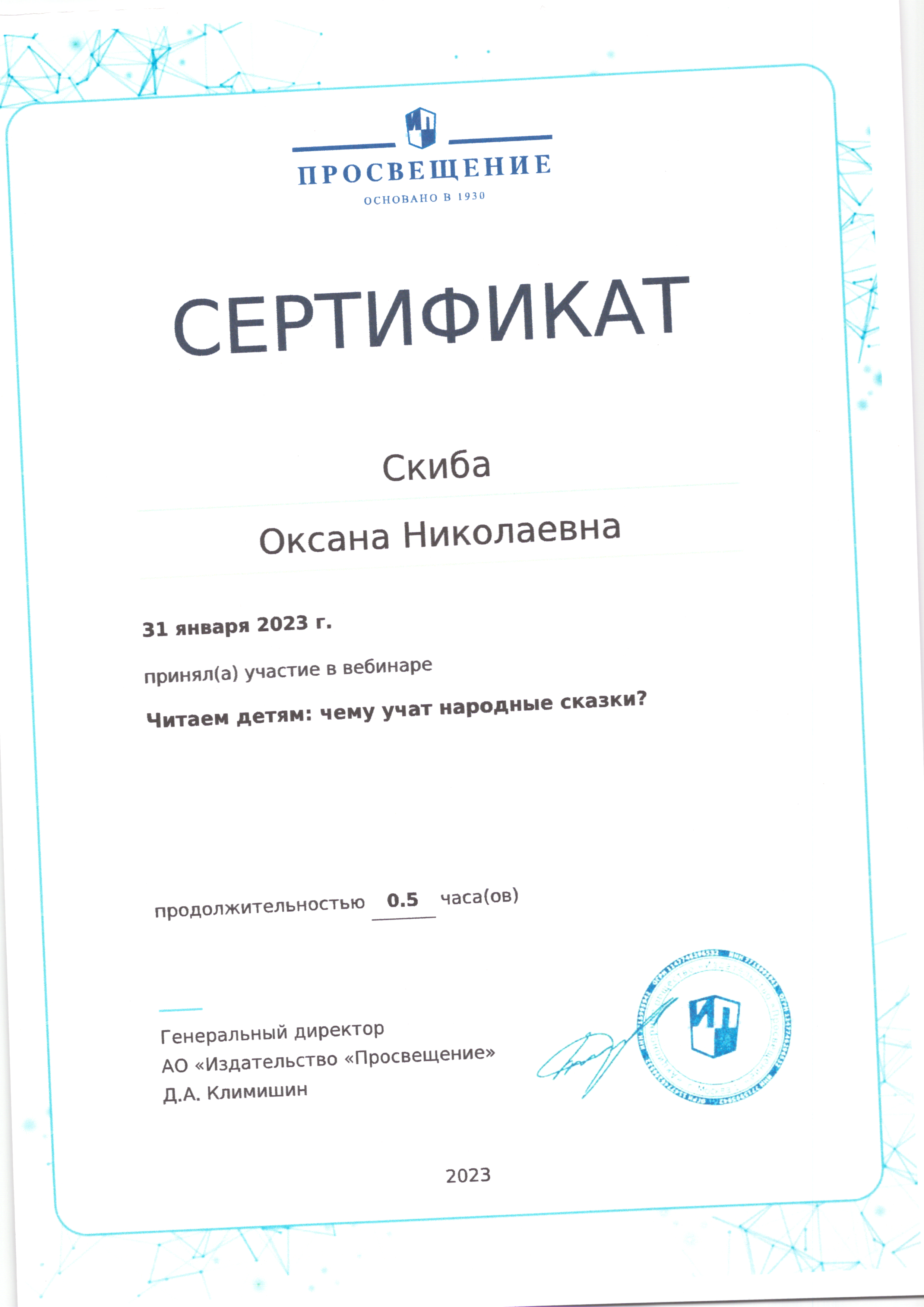 | Фамилия, имя, отчество | Скиба Оксана Николаевна |